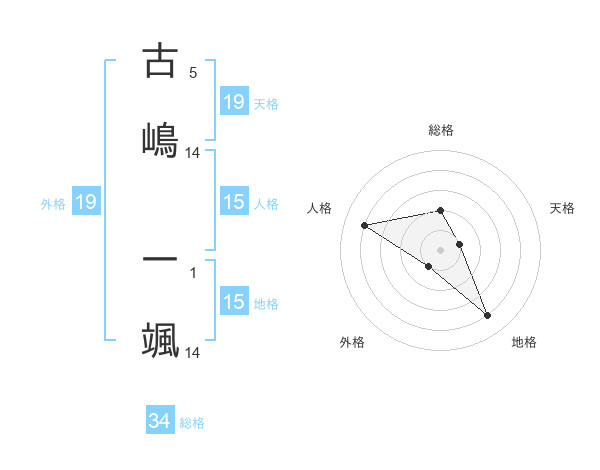 古嶋 一颯さんを姓名の画数から五運を鑑定