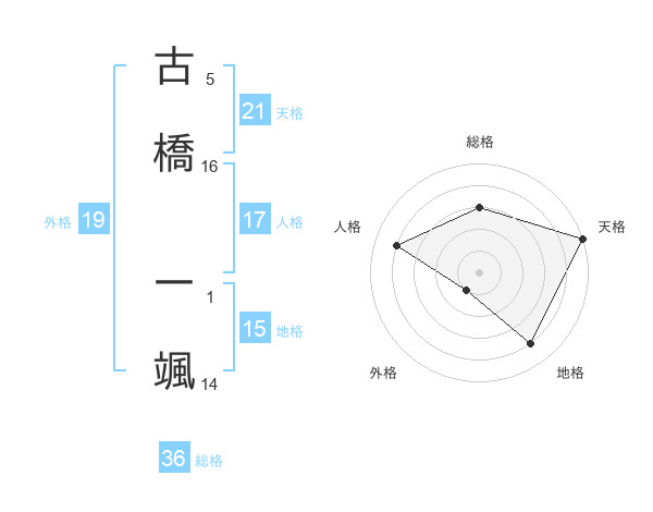 古橋 一颯さんの天格は21画の5点!