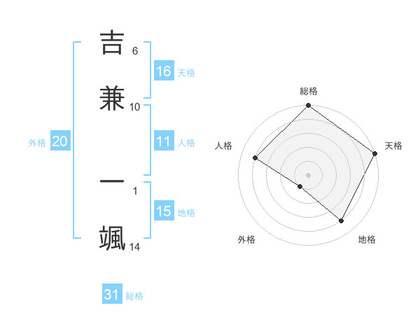 吉兼 一颯さんの天格は16画の5点!