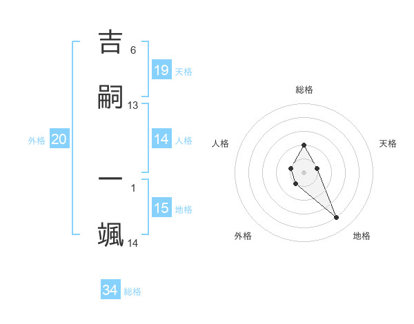 吉嗣 一颯さんを姓名の画数から五運を鑑定