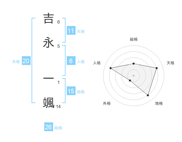 吉永 一颯さんの天格は11画の4点!