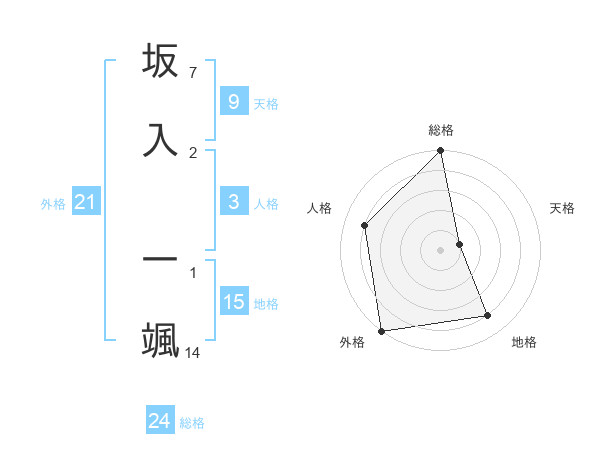 坂入 一颯さんを姓名の画数から五運を鑑定