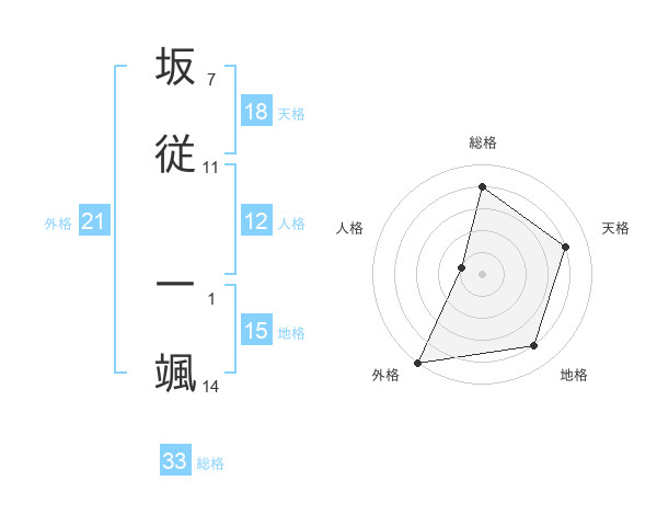 坂従 一颯さんの総格は33画の4点!