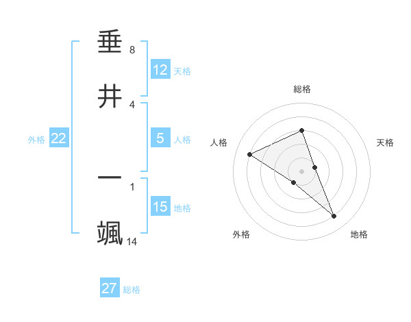 垂井 一颯さんの外格は22画の1点!