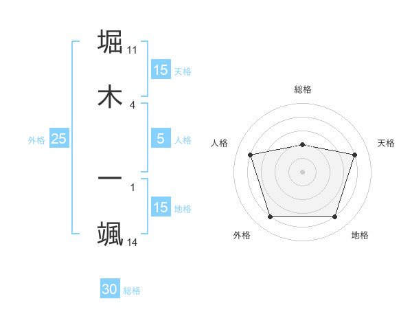 堀木 一颯さんの天格は15画の4点!