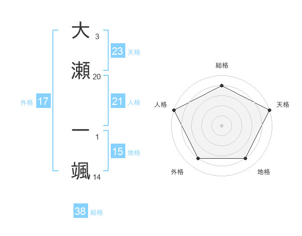 大瀬 一颯さんを姓名の画数から五運を鑑定