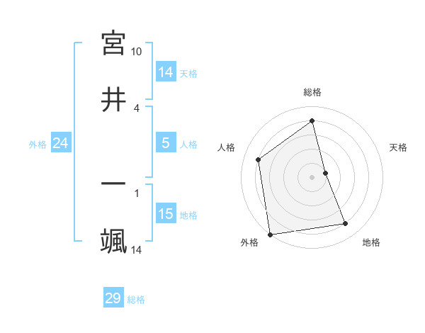 宮井 一颯さんの外格は24画の5点!