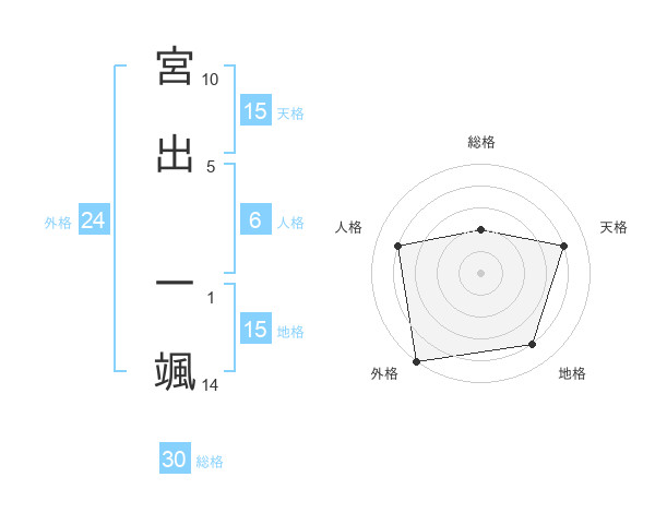 宮出 一颯さんの外格は24画の5点!