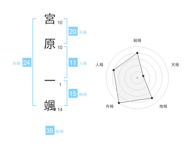 宮原 一颯さんを姓名の画数から五運を鑑定
