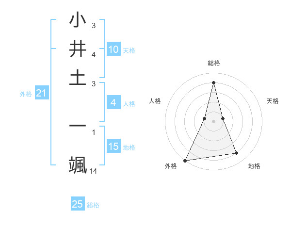 小井土 一颯さんを姓名の画数から五運を鑑定
