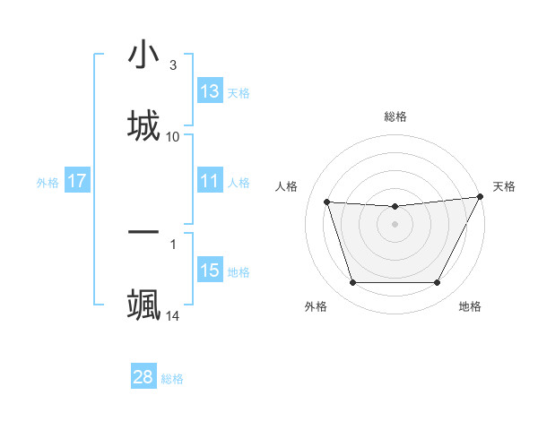 小城 一颯さんの天格は13画の5点!