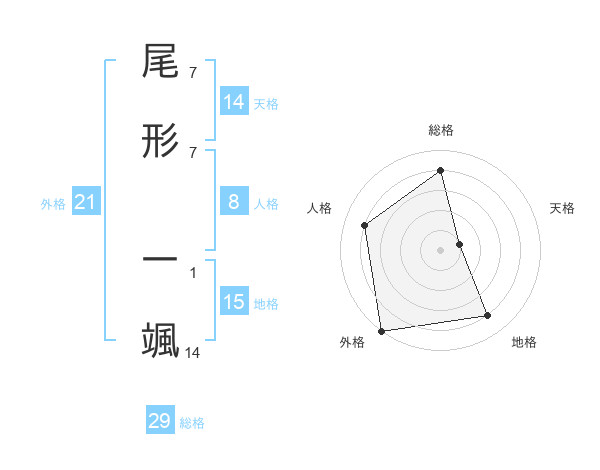 尾形 一颯さんの総格は29画の4点!
