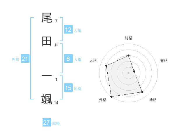 尾田 一颯さんの総格は27画の3点!