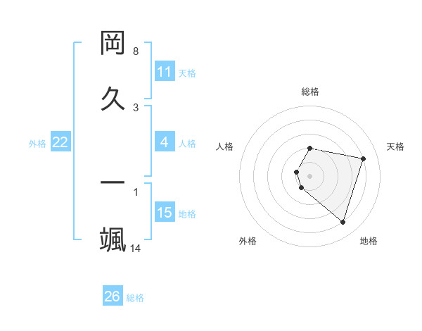 岡久 一颯さんを姓名の画数から五運を鑑定