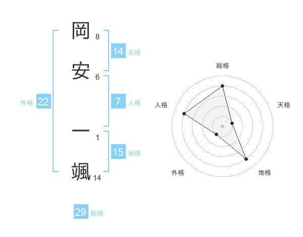 岡安 一颯さんの外格は22画の1点!