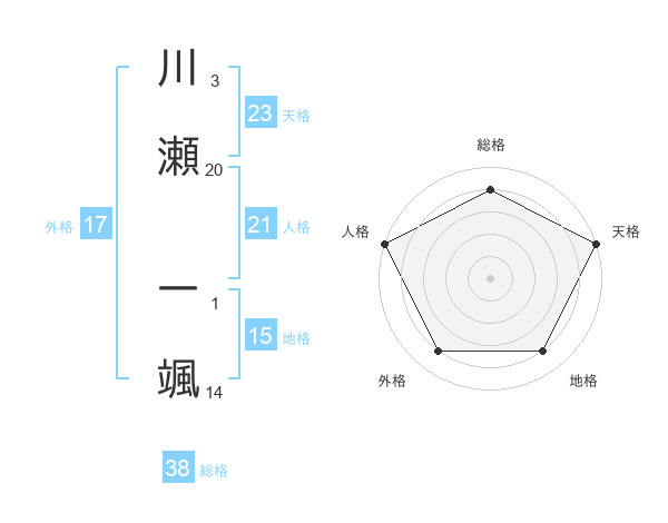 川瀬 一颯さんの天格は23画の5点!