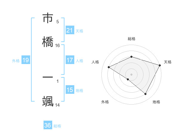 市橋 一颯さんを姓名の画数から五運を鑑定
