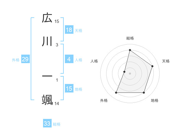 広川 一颯さんの天格は18画の4点!