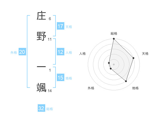 庄野 一颯さんの天格は17画の4点!