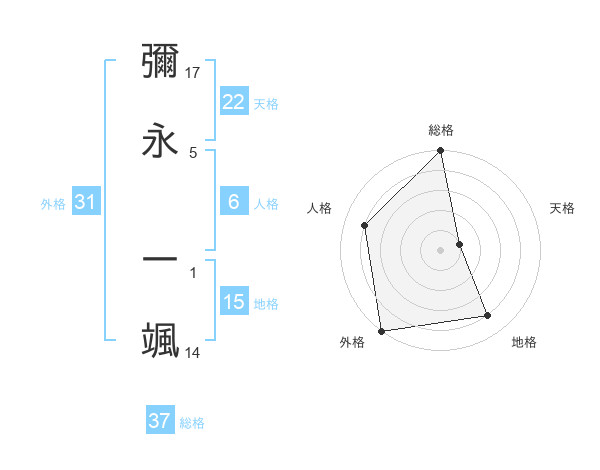 彌永 一颯さんの外格は31画の5点!