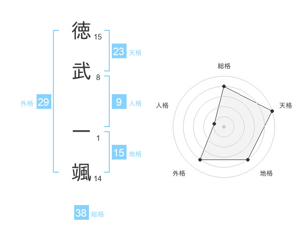 徳武 一颯さんの天格は23画の5点!