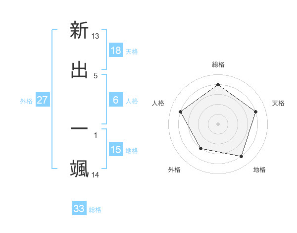 新出 一颯さんの天格は18画の4点!