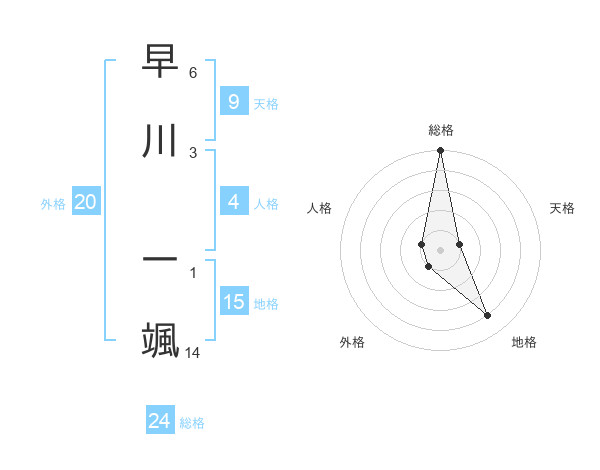 早川 一颯さんの総格は24画の5点!