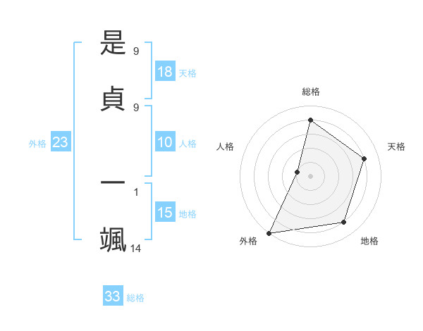 是貞 一颯さんを姓名の画数から五運を鑑定