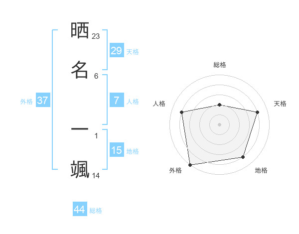 晒名 一颯さんの外格は37画の5点!