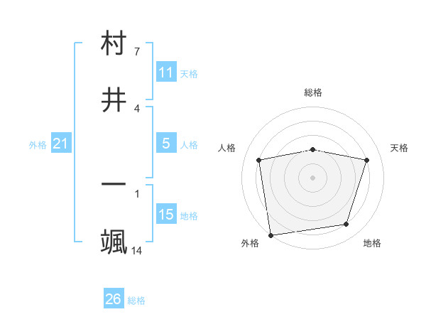 村井 一颯さんの外格は21画の5点