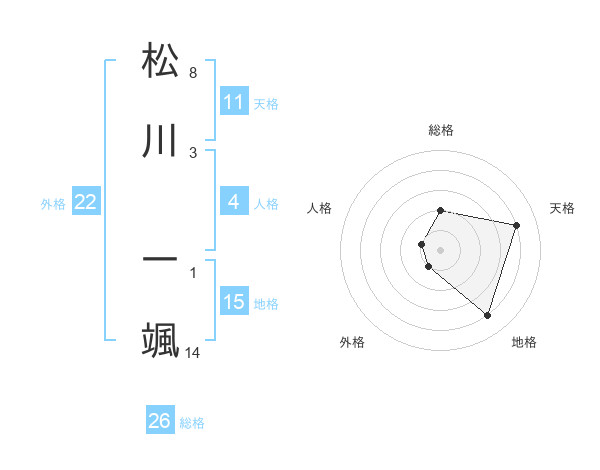 松川 一颯さんの外格は22画の1点!