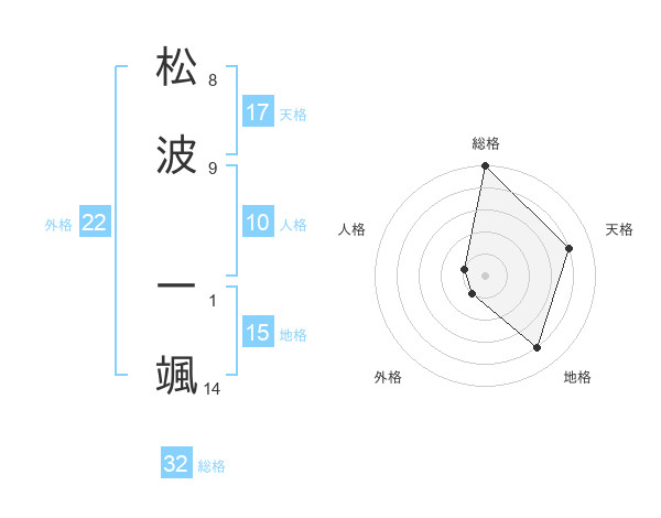 松波 一颯さんの総格は32画の5点!