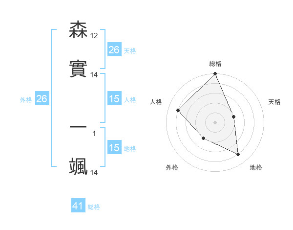 森實 一颯さんの総格は41画の5点!