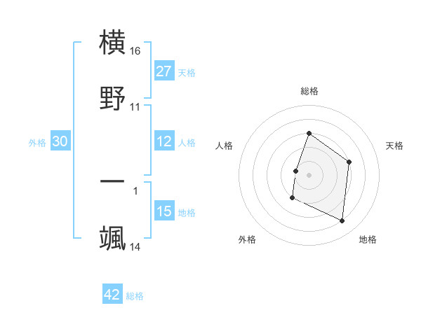横野 一颯さんの総格は42画の3点!