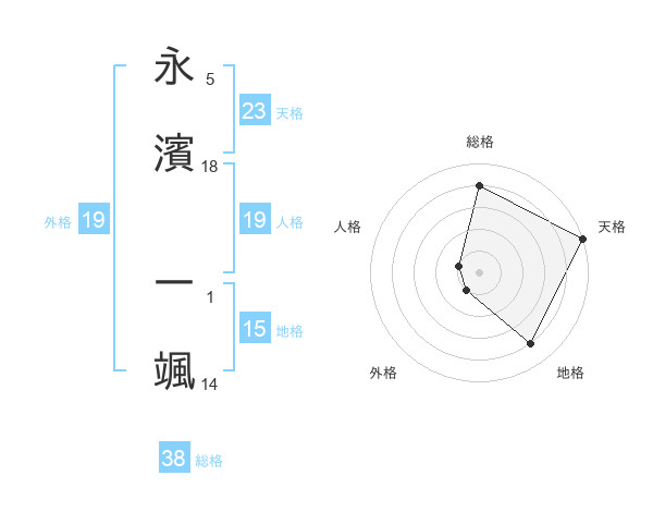 永濱 一颯さんの外格は19画の1点!