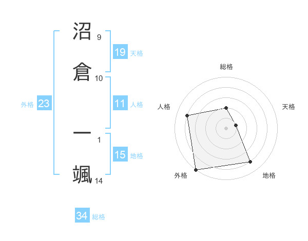 沼倉 一颯さんの総格は34画の2点!