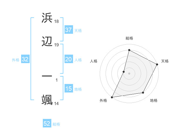 浜辺 一颯さんの総格は52画の4点!
