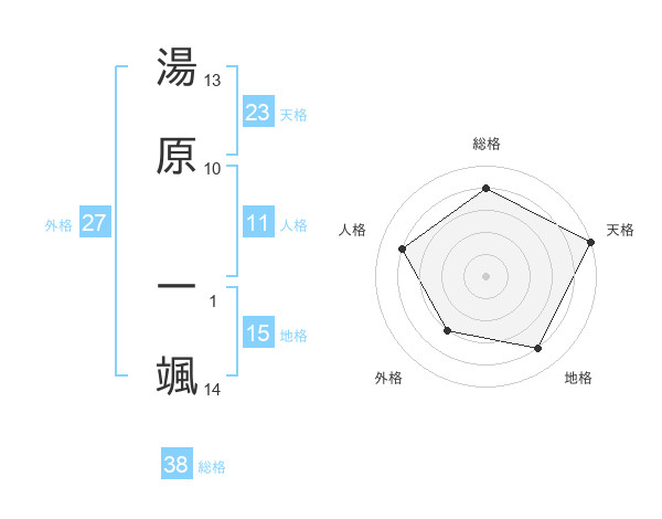 湯原 一颯さんの天格は23画の5点!