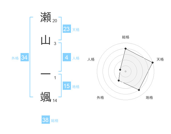 瀬山 一颯さんの総格は38画の4点!