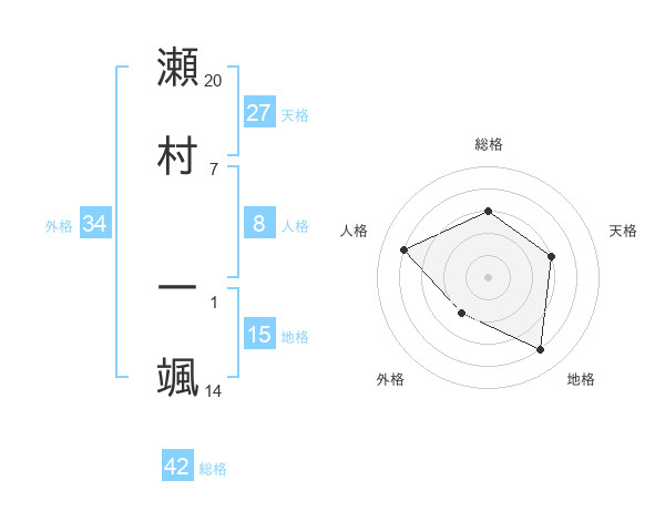瀬村 一颯さんの総格は42画の3点!