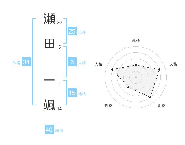 瀬田 一颯さんの天格は25画の4点!