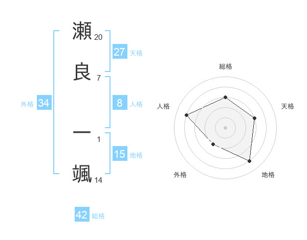 瀬良 一颯さんの外格は34画の2点!