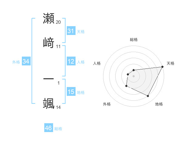 瀬﨑 一颯さんの天格は31画の5点!