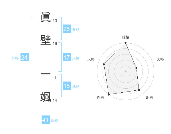 眞壁 一颯さんを姓名の画数から五運を鑑定