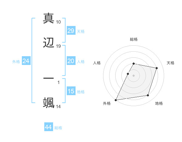 真辺 一颯さんの総格は44画の2点!