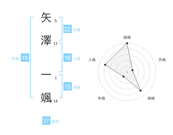 矢澤 一颯さんを姓名の画数から五運を鑑定