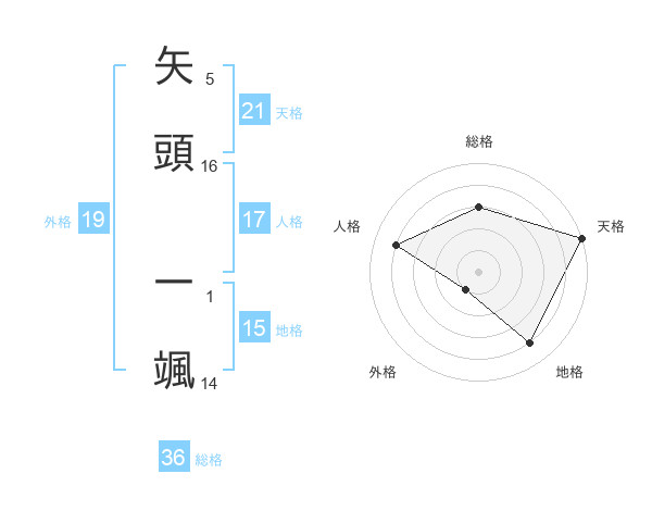 矢頭 一颯さんを姓名の画数から五運を鑑定