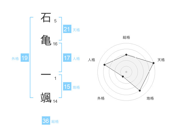 石亀 一颯さんの天格は21画の5点!