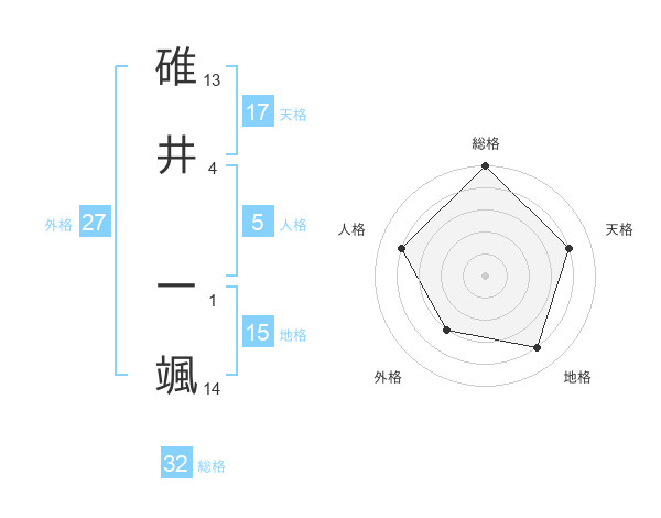 碓井 一颯さんの総格は32画の5点!
