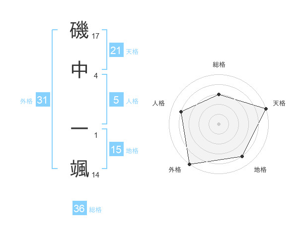 磯中 一颯さんの外格は31画の5点!